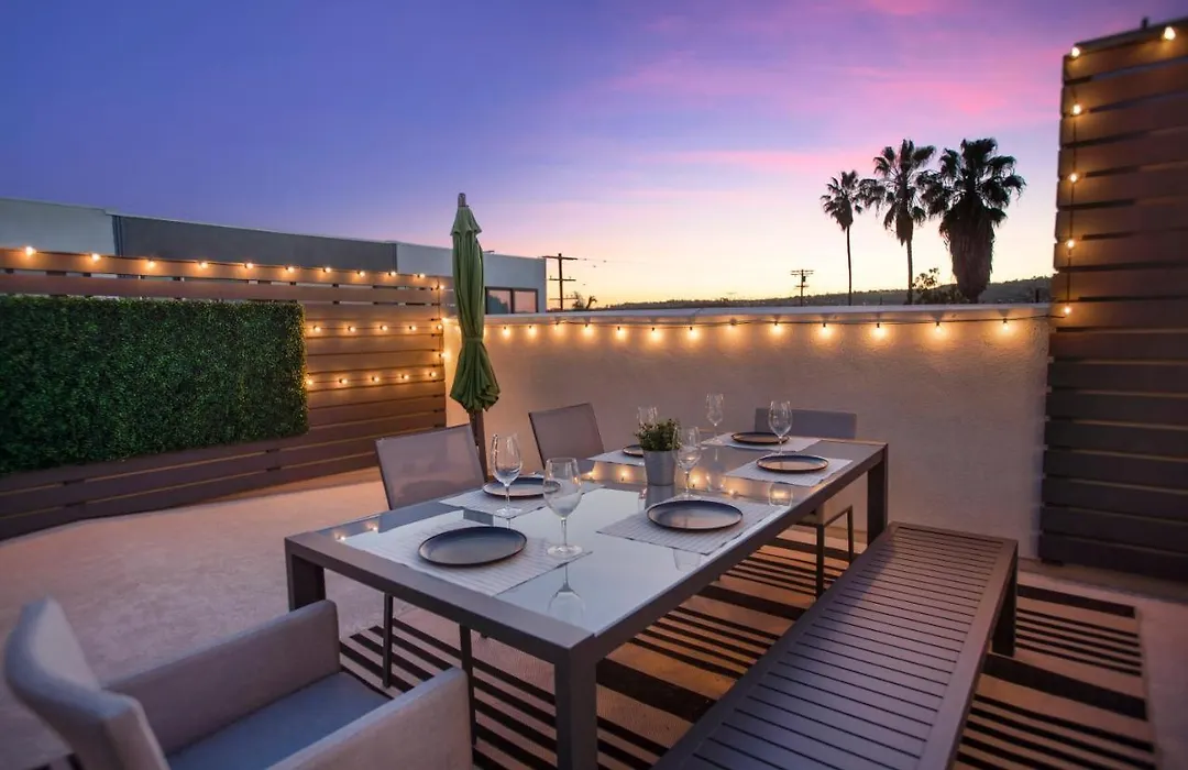 Die La Harbor Home With Private Rooftop Near #Dtla verfügt über eine sonnige Terrasse mit einem Esstisch.